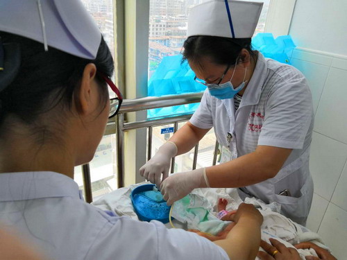 近几年,该科多次派出业务能力强的护理人员赴广州妇女儿童医疗中心学习,将改良式的婴幼儿回流灌肠方法带回我院并积极推广,为多位饱受先天性巨结肠、粪石症的患儿进行了洗肠治疗,并手把手指导需要在家长期进行洗肠的患儿家长如何洗肠,取得了良好治疗效果和社会效应。洗肠过程中,被调皮的宝宝喷了一身便便的护士有之,因长时间弓腰而腰肌劳损的护士有之,反复使用注射器推抽使得双手被磨出了水泡和茧子的护士有之……但这帮健康的护卫者从未面露怯色和厌烦,看到患儿们艰难排出的这些珍贵的便便以及他们一脸舒适的享受样,总能让她们露出老母亲般的笑容。