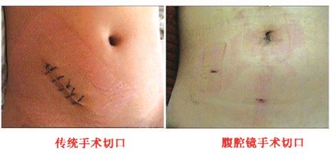 传统手术和腹腔镜手术切口对比。 通讯员 摄