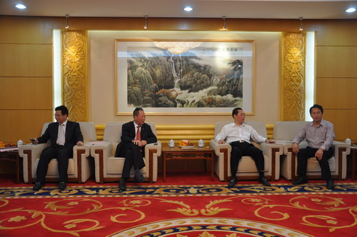 黄楚龙(左二)、周南(左一)和刘玉荣(左三)、陈阳生(左四)在座谈。