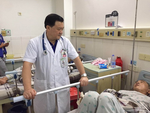 朱志辉主任查看病人术后恢复情况。