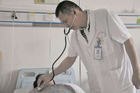 石兵主任在为心脑血管疾病患者作检查。 张鹤涛 摄